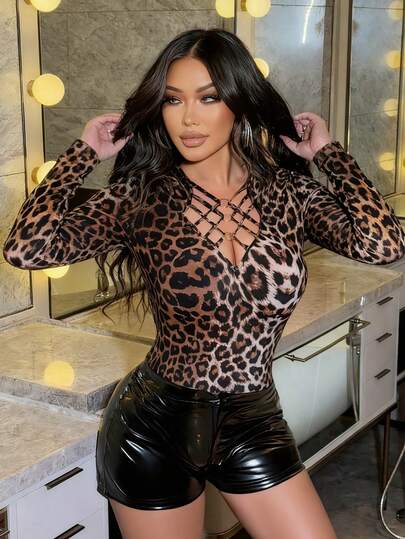 Elevate your bold fashion style with this leopard print lace‑up bodysuit, designed for women who love confident and eye‑catching looks. Featuring a figure‑hugging fit and a striking animal print pattern, this bodysuit perfectly enhances the silhouette while delivering a modern, sexy aesthetic.
