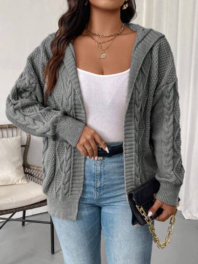 Stay effortlessly stylish with this women’s hooded knit cardigan, designed for comfort, warmth, and everyday elegance. Featuring a classic cable knit pattern, a relaxed open‑front design, and a cozy hood, this cardigan is the perfect layering piece for cooler seasons.