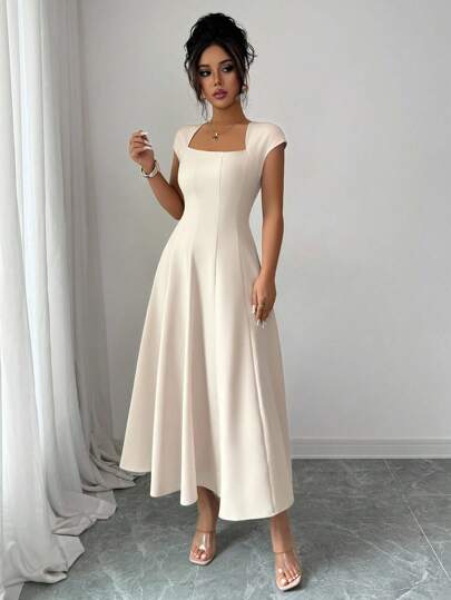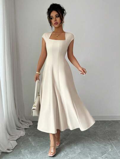 This women’s midi dress features an elegant square neckline and a cinched waist that enhances the silhouette beautifully. Designed with a flattering A‑line cut, the skirt flows naturally, creating a refined and feminine look with effortless movement.